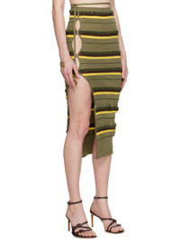 Rib knit stretch nylon and cotton-blend skirt. Adjustable button strap with beaded detailing at waistband. · Stripe pattern and boucle trim throughout · Low-rise · Button slit at hem · Unlined Supplier color: Dark green 44% polyamide, 30% cotton, 19% recycled polyamide, 7% elastane. Made in Portugal 231553F092009