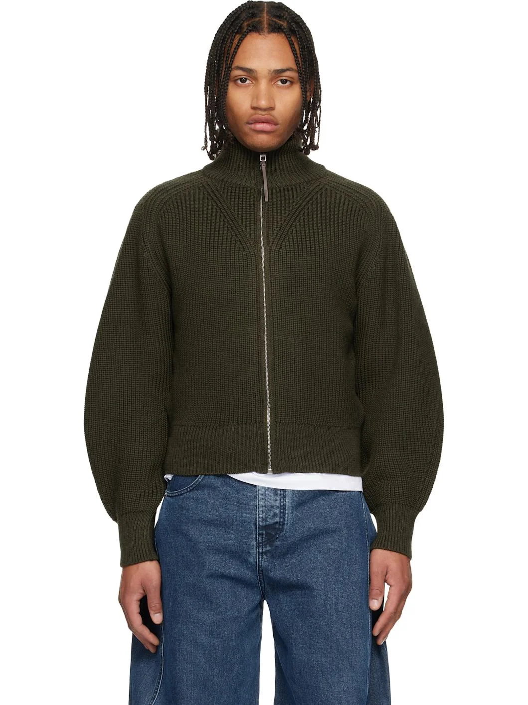 Rib-knit ultrafine merino wool track jacket. · Stand collar · Zip closure · Raglan sleeves Supplier color; Dark khaki 100% ultrafine merino wool. Made in Portugal 252553M202012