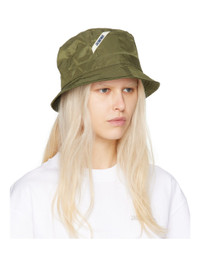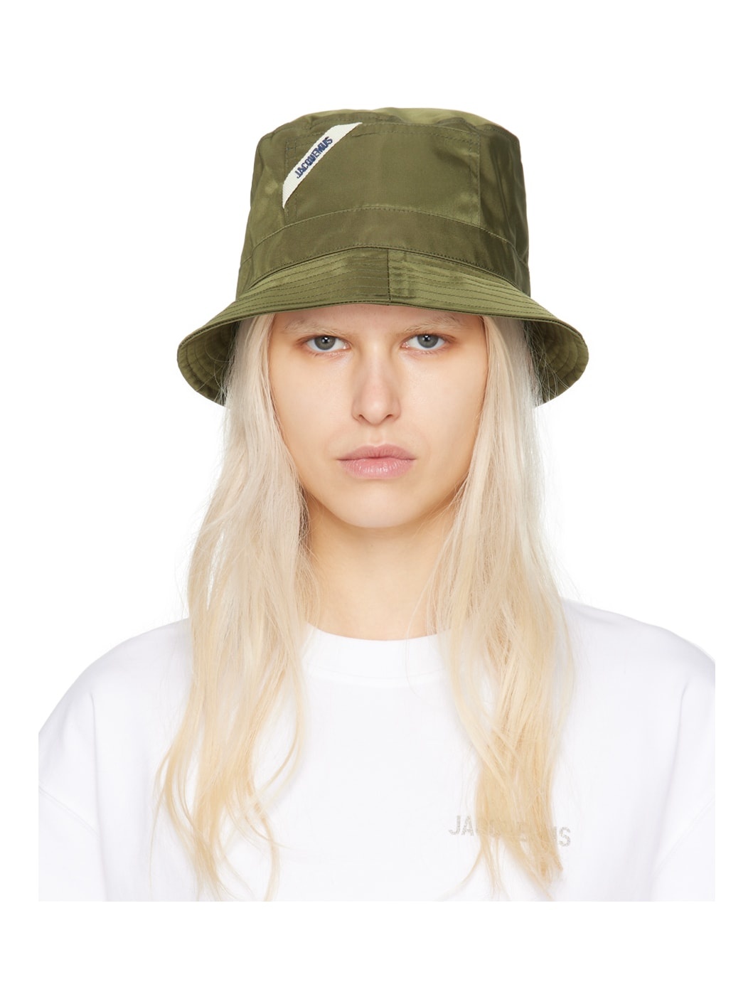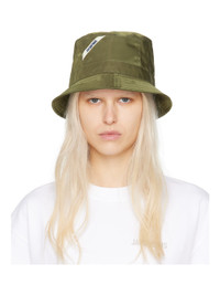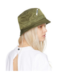 Nylon- and acrylic-blend satin bucket hat in green. · Card slot and logo flag at face · Quilted brim · Metal eyelets at back face · Cotton broadcloth lining Part of the Le Chouchou collection. Supplier color: Khaki Body: 90% polyamide, 10% acrylic. Lining: 100% cotton. Made in Italy 241553F015009