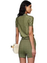 Knit stretch viscose-blend polo. Jacquard graphic pattern throughout. · Rib-knit spread collar, hem, and cuffs · Logo embroidered at front Supplier color: Multi/Black 93% viscose, 4% polyester, 3% elastane. Made in Bulgaria 251553F108004