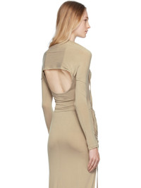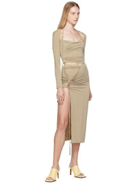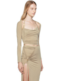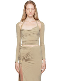 Stretch cupro jersey T-shirt. Draping throughout. · Layered construction · Cowl neck · Adjustable pin-buckle halter strap · Cutout at back · Logo-engraved gold-tone hardware Part of the Le Chouchou collection. Supplier color: Light khaki 97% cupro, 3% elastane. Made in Portugal 232553F110001