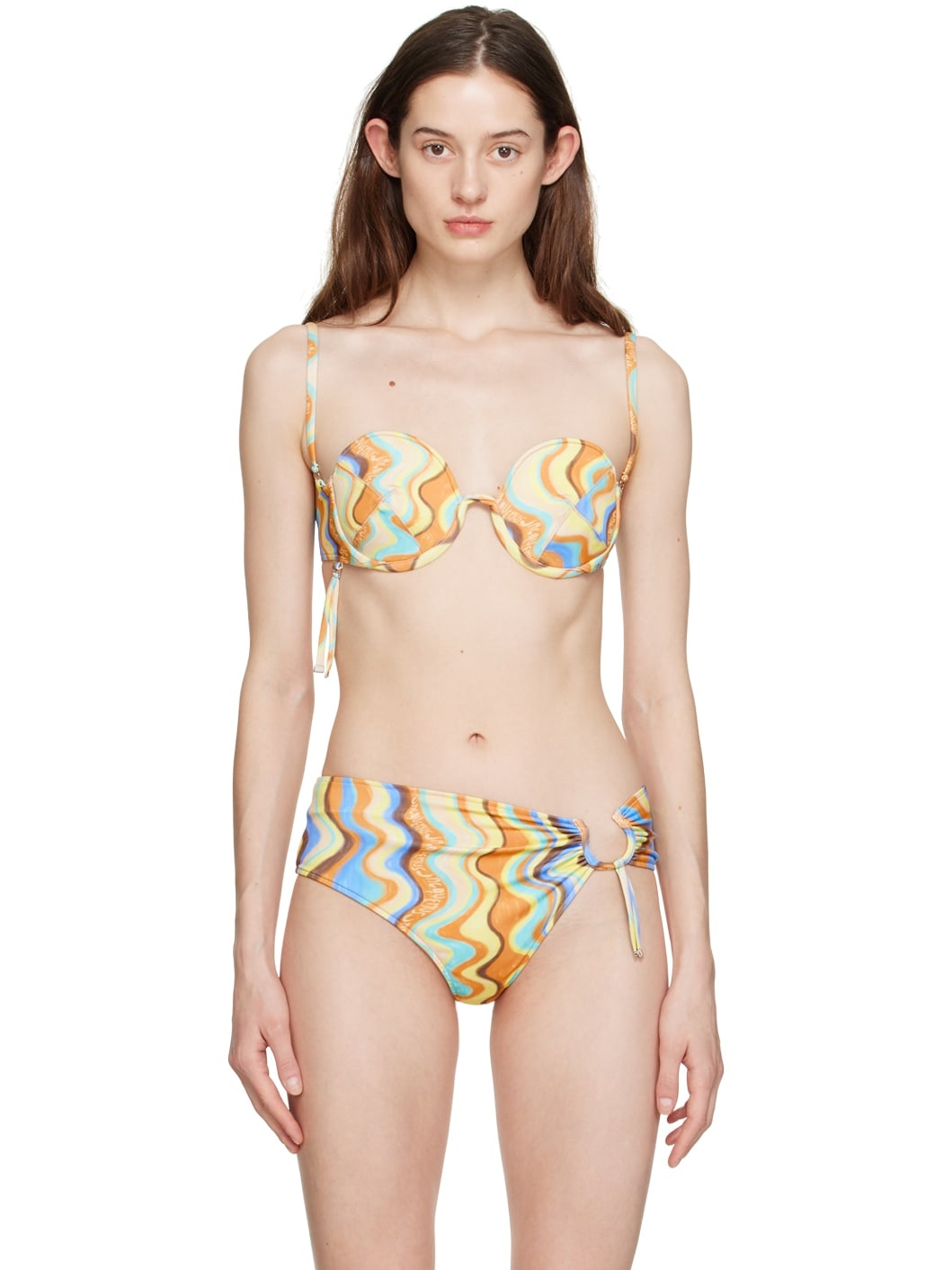 Stretch recycled polyester-blend jersey bikini top. Logo graphic pattern printed throughout. · Sweetheart neck · Underwire at cups · Self-tie spaghetti straps · Flip-clasp fastening at back · Full jersey lining Part of the Le Raphia collection. Supplier color: Print multicolor 80% recycled polyester, 16% elastane, 4% polyester. Made in Portugal 231553F105021
