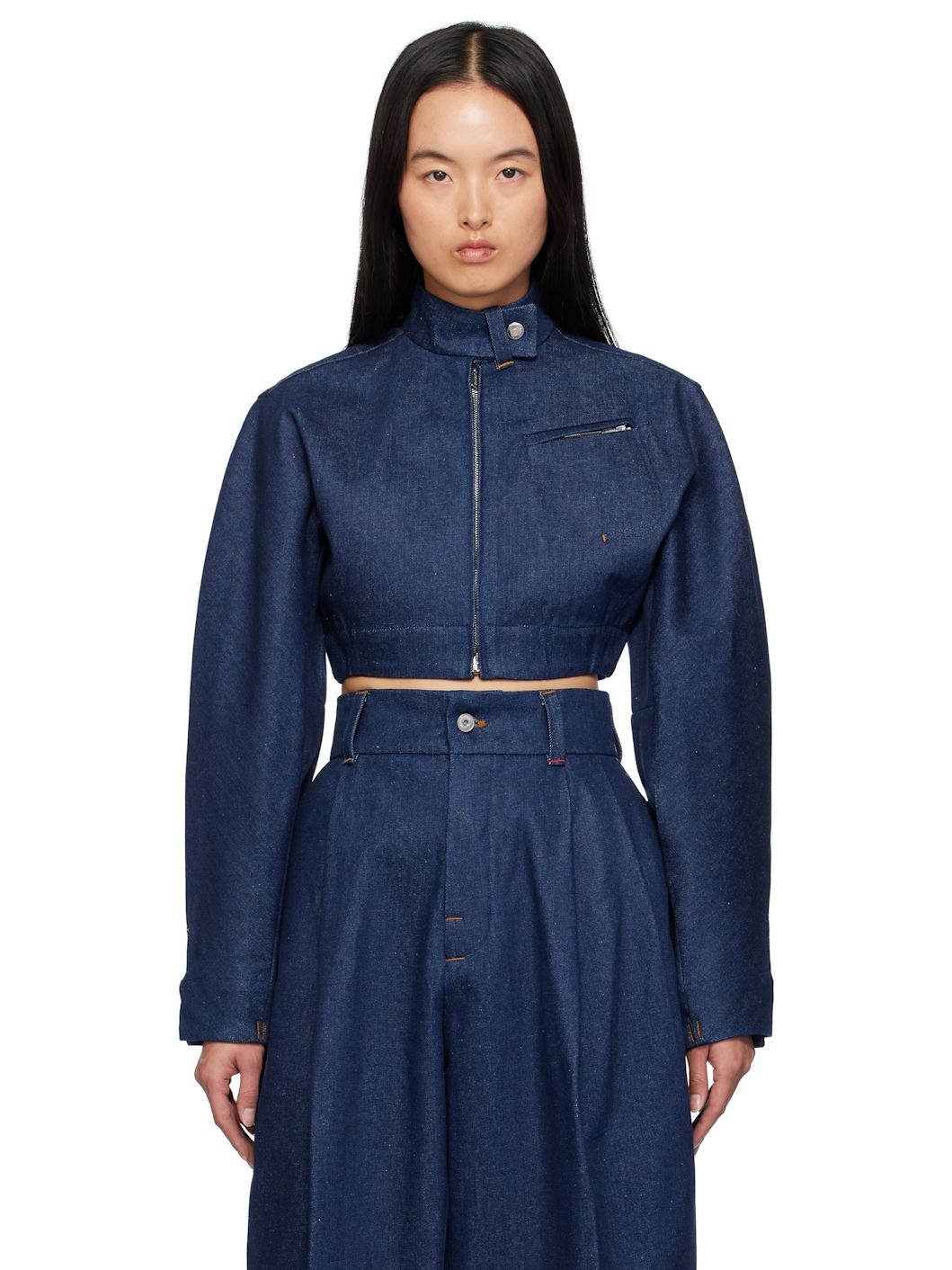 Non-stretch denim jacket. · Press-stud tab and loop at stand collar · Zip closure · Zip pocket at chest · Cropped hem · Loop, press-stud tab, and zip vent at cuffs · Logo locker loop at back collar · Contrast stitching in tan Part of the La Casa collection. Supplier color: Navy 100% cotton. Made in Italy 242553F060000