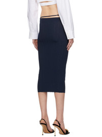 Rib knit viscose-blend skirt. Pointelle stripes throughout. · Adjustable strap with logo hardware at waist · Elasticized waistband Supplier color: Dark navy 94% viscose, 6% polyester. Made in Romania 241553F092013
