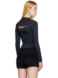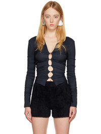 Stretch viscose and silk-blend canvas shirt. Gathering throughout. · Spread collar · V-neck · Hook-eye closure · Cutouts at sleeves · Cutout at back yoke · Full jersey lining · Silver-tone hardware Part of the Le Papier collection. Supplier color: Navy 75% viscose, 21% silk, 4% elastane.