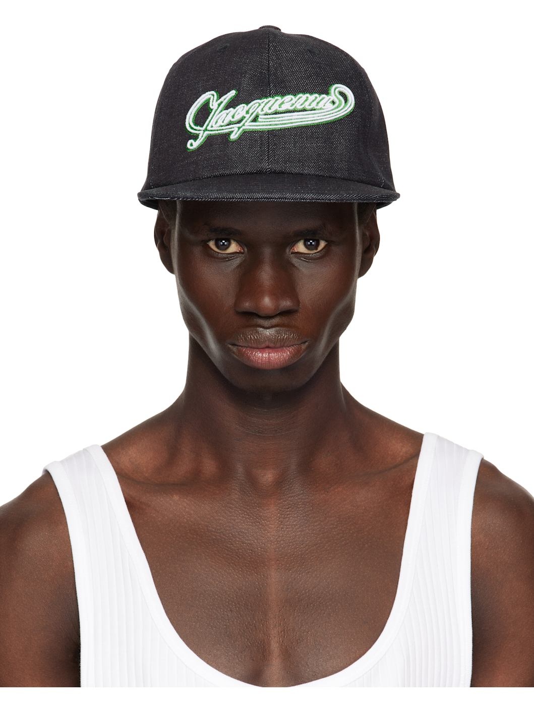 Non-stretch denim cap in navy. · Embroidered eyelets at crown · Embroidered logo patch at face · Curved brim · Cinch fastening · Logo-engraved silver-tone hardware Supplier color: Navy 100% cotton. Made in Bulgaria 251553M139017