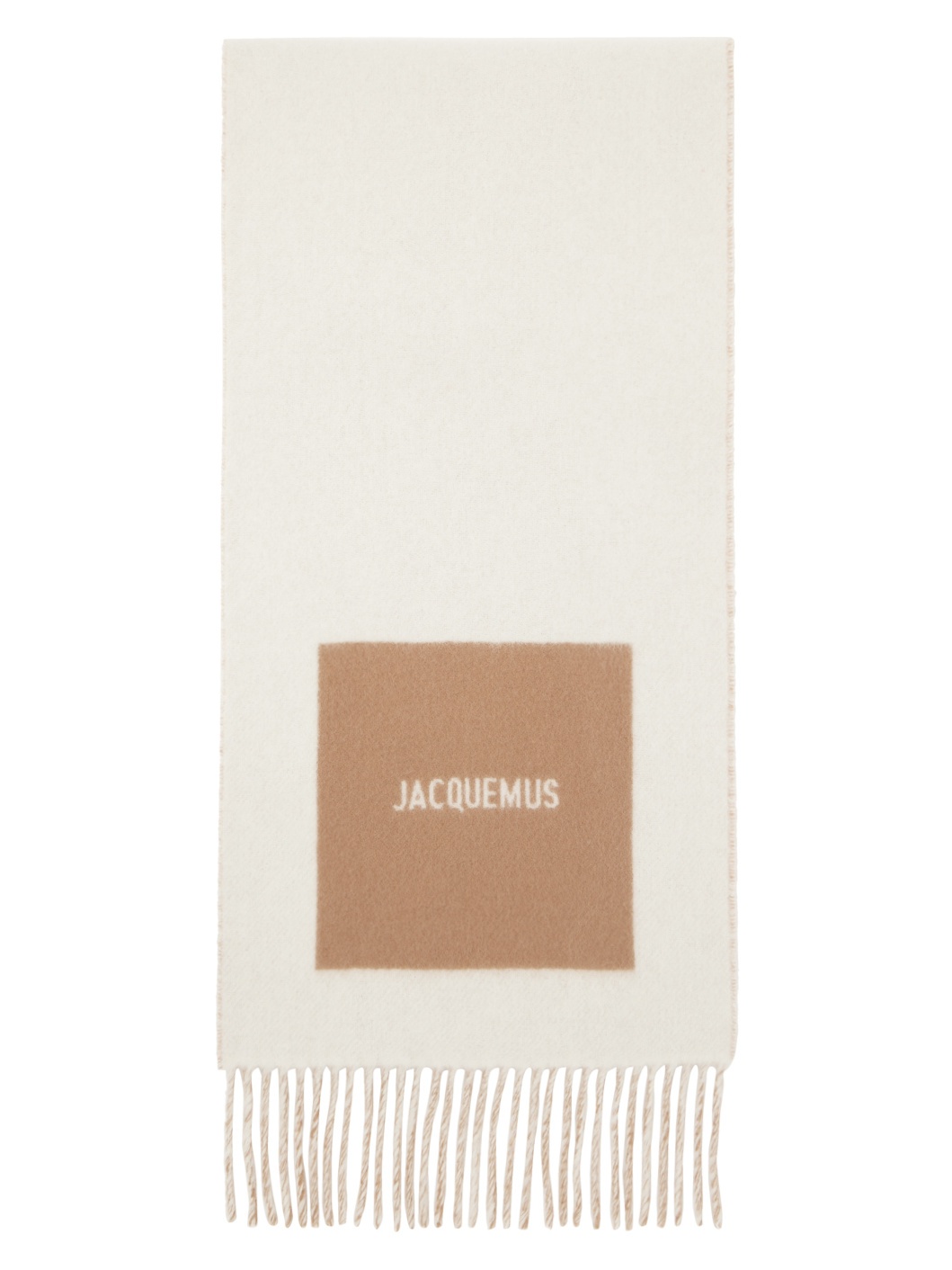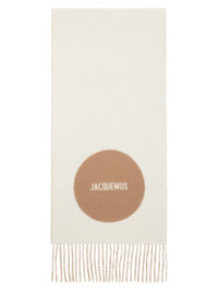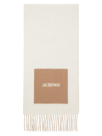 Rectangular felted virgin wool scarf in off-white. · Jacquard logos at face · Fringed detailing at ends · L70" x W12" Part of the La Casa collection. Supplier color: Multi/Beige