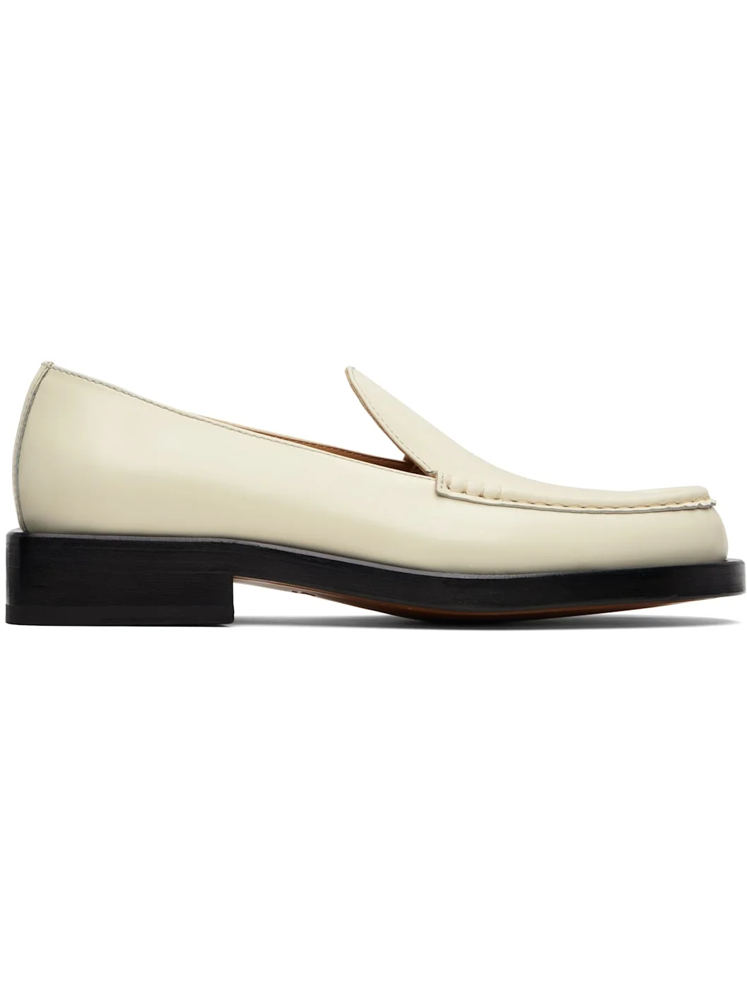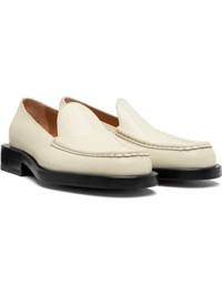Polished calfskin loafers. · Moc toe · Stacked leather heel with rubber injection · Leather sole Part of the La Croisiere collection. Supplier color: Off-white Upper: calfskin. Sole: leather, rubber. Made in Portugal 252553M231003