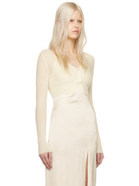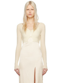 Brushed knit polyamide- and mohair-blend cardigan. · V-neck · Button closure · Rib knit cropped hem · D-ring at back Part of the Le Papier collection. Supplier color: Off-white 44% polyamide, 40% mohair, 16% wool. Made in Italy 241553F095005