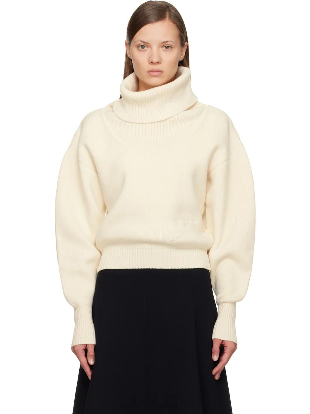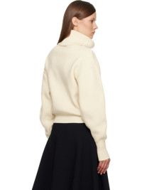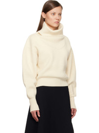 Heavyweight knit virgin wool- and cashmere-blend sweater. · Oversized · Rib-knit funnel neck, hem, and cuffs · Text embroidered at front · Dropped shoulders Supplier color: Off-white 90% virgin wool, 10% cashmere. Made in Italy 252553F099002