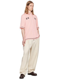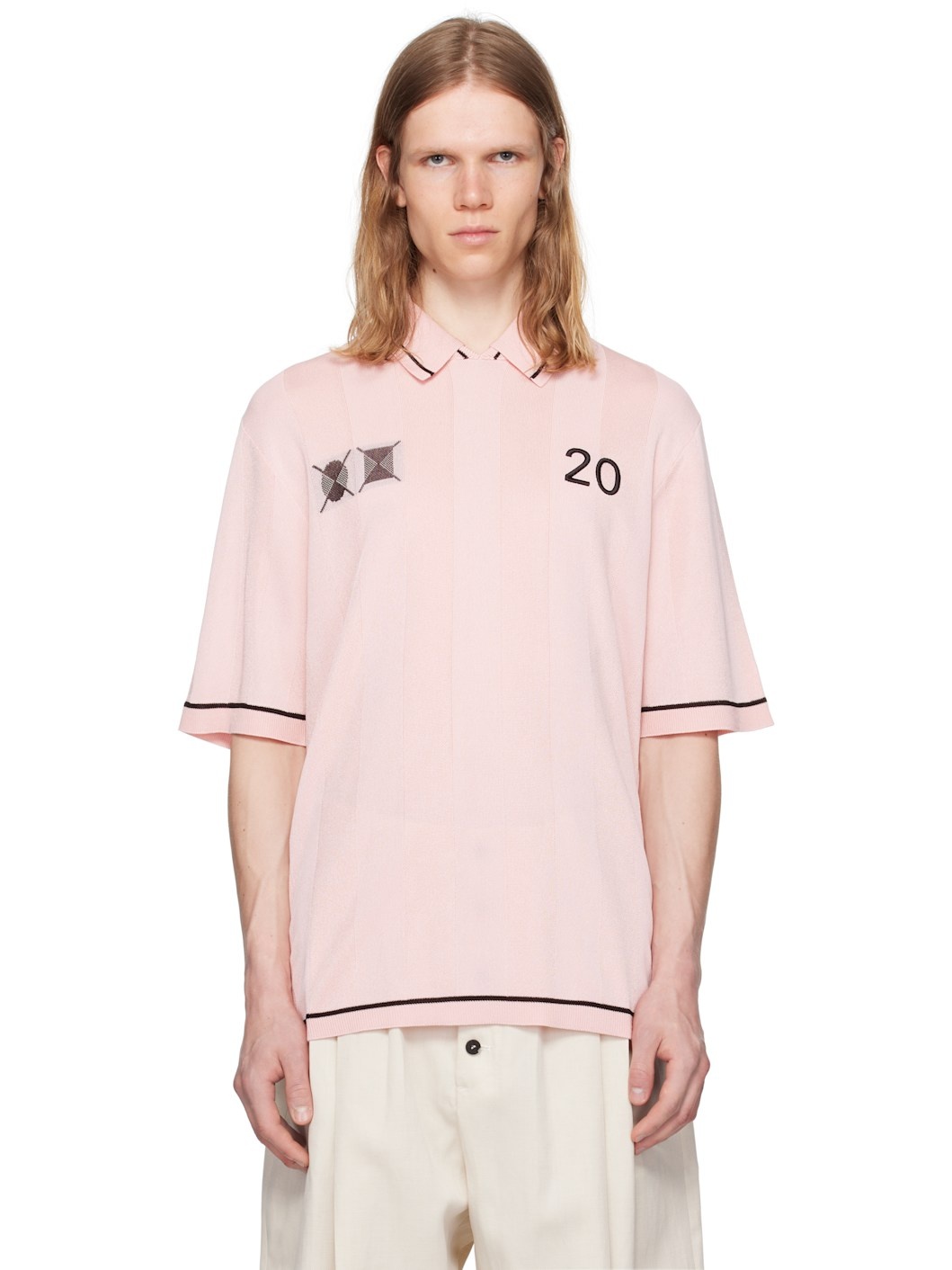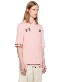 Knit stretch viscose-blend polo. Jacquard stripes throughout. · Striped rib-knit spread collar, hem, and cuffs · Jacquard graphic and embroidered text at chest · Jacquard logo graphic at back Part of the La Croisiere collection. Supplier color: Light pink 91% viscose, 8% polyamide, 1% elastane. Made in Romania 251553M212003