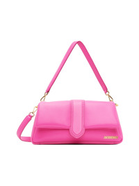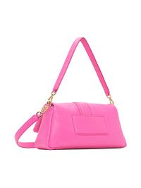 Padded buffed lambskin shoulder bag in pink. Logo hardware at face. · Detachable carry handle · Detachable shoulder strap · Patch pocket at back face · Foldover flap with magnetic fastening · Patch pocket at interior · Twill lining · Logo-engraved gold-tone hardware · H5.5 x W12 x D3 in Part of the Le Chouchou collection. Supplier color: Neon pink