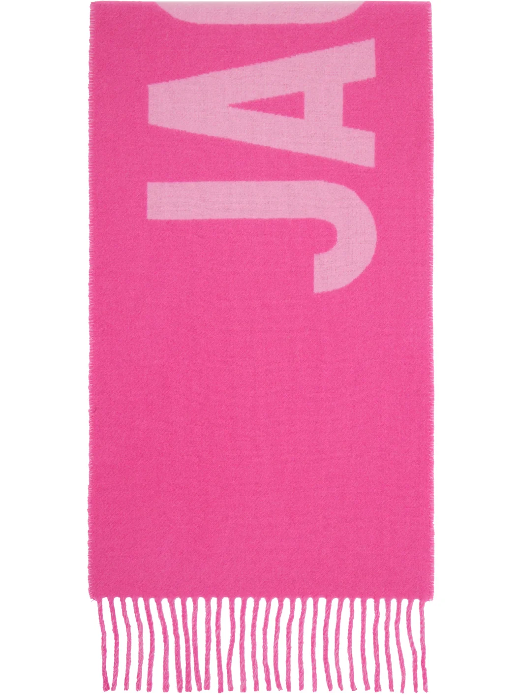 Rectangular knit wool scarf. · Jacquard logo at face · Fringed detailing at ends · L80.25" x W14" Supplier color: Multi-pink 100% wool. Made in Italy 252553M150000