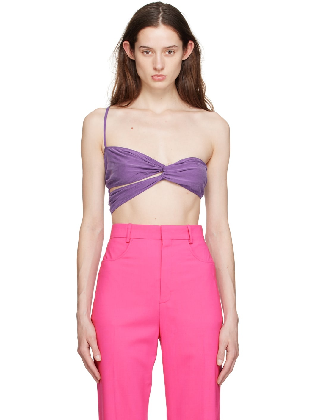 Stretch cupro jersey tank top. · Asymmetric construction · Twisted detailing and cutouts at front · Spaghetti strap · Cropped hem · Tab-slot closure at back Supplier color: Purple 93% cupro, 7% elastane. Made in Portugal 231553F073013