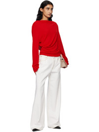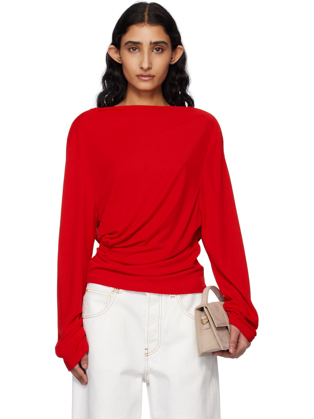 Viscose- and nylon-blend jersey blouse. · Boatneck · Gathering at side seam · Asymmetric hem · Draping at low back Part of the La Croisiere collection. Supplier color: Red 82% viscose, 18% polyamide. Made in Portugal 251553F110029