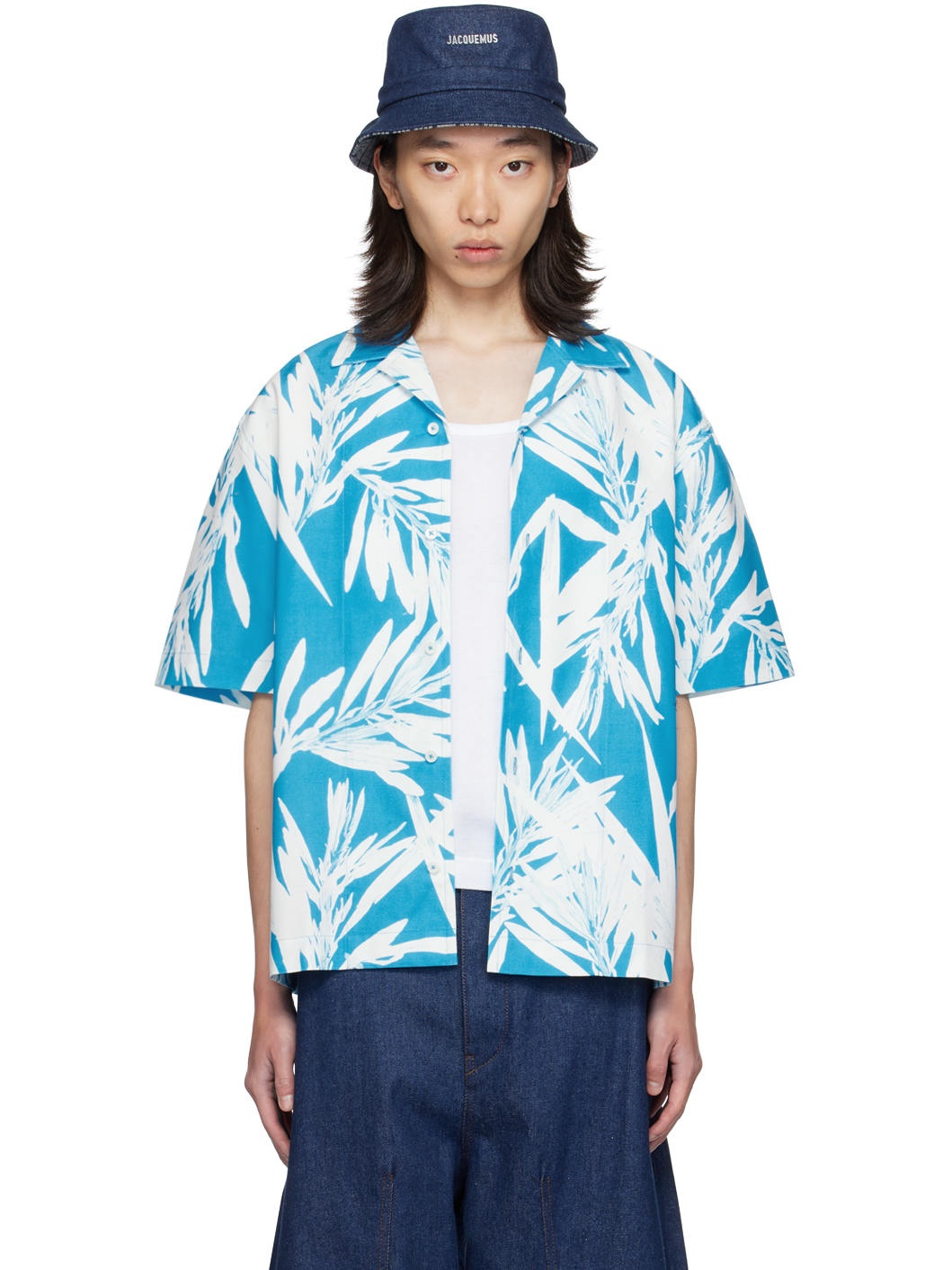Cotton canvas shirt. Graphic pattern printed throughout. · Open spread collar · Button closure · Logo embroidered at chest · Dropped shoulders · Locker loop at back yoke · Mother-of-pearl hardware Part of the La Casa collection. Available exclusively at SSENSE. Supplier color: Print foliage white/Blue 100% cotton. Made in Portugal 242553M192027