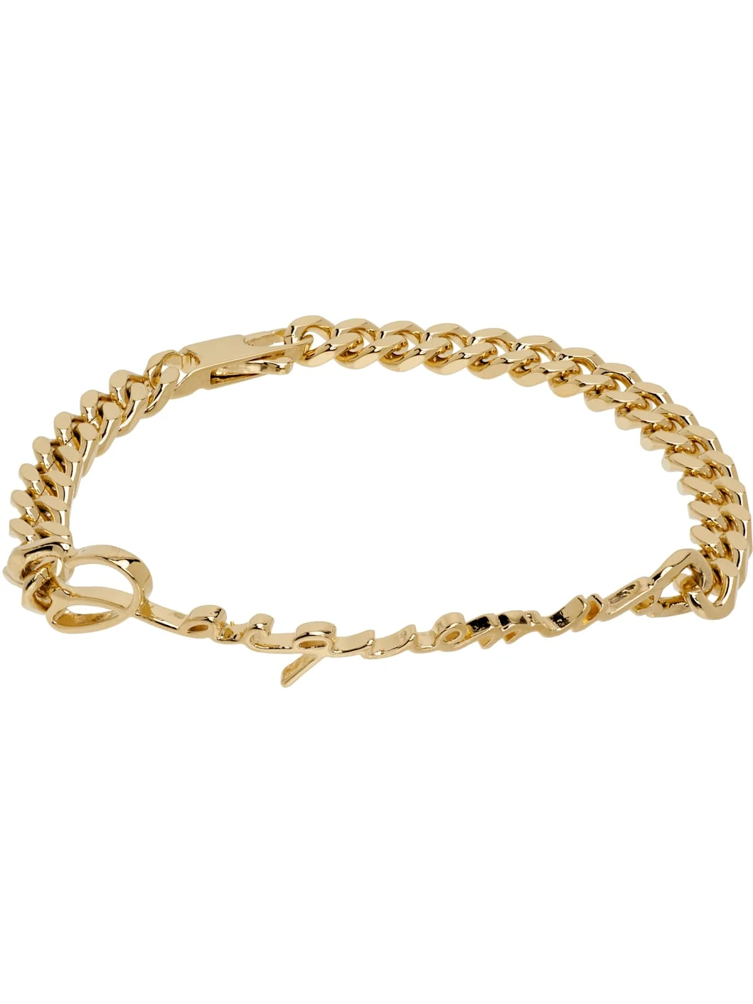 Curb chain bracelet in gold-tone brass. · Logo charm at face · Lobster-clasp fastening · L6.5" Supplier color: Gold Brass. Made in Italy 252553F020002