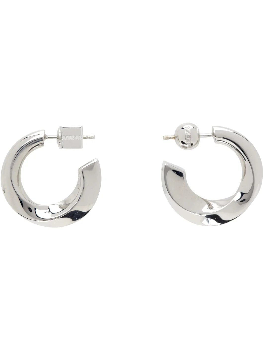 Pair of open hoop earrings in sterling silver. · Twisted detailing throughout · Post-stud fastening · D0.75" Supplier color: Silver 925 sterling silver. Made in Italy 252553F022005