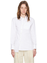 Cotton poplin shirt. · Asymmetrical construction · Spread collar · Offset button closure · Patch pocket · Flared single-button barrel cuffs · Locker loop at back collar · Offset box pleat at back yoke Part of the La Casa collection. Supplier color: White 100% cotton. Made in Bulgaria 242553F109011