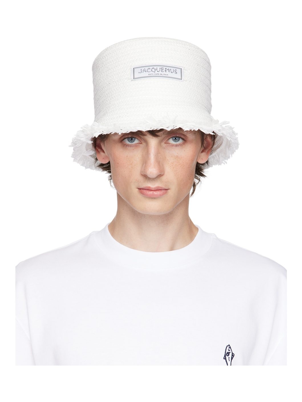 Woven raffia hat in white. · Logo patch at face · Frayed edge at foldable brim · Webbing browband · Unlined Part of the La Casa collection. Supplier color: White
