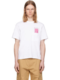 Cotton jersey T-shirt. · Rib-knit crewneck · Printed logo graphic and patch pocket at chest Supplier color: Ice print white 100% cotton. Made in Portugal 251553M213014