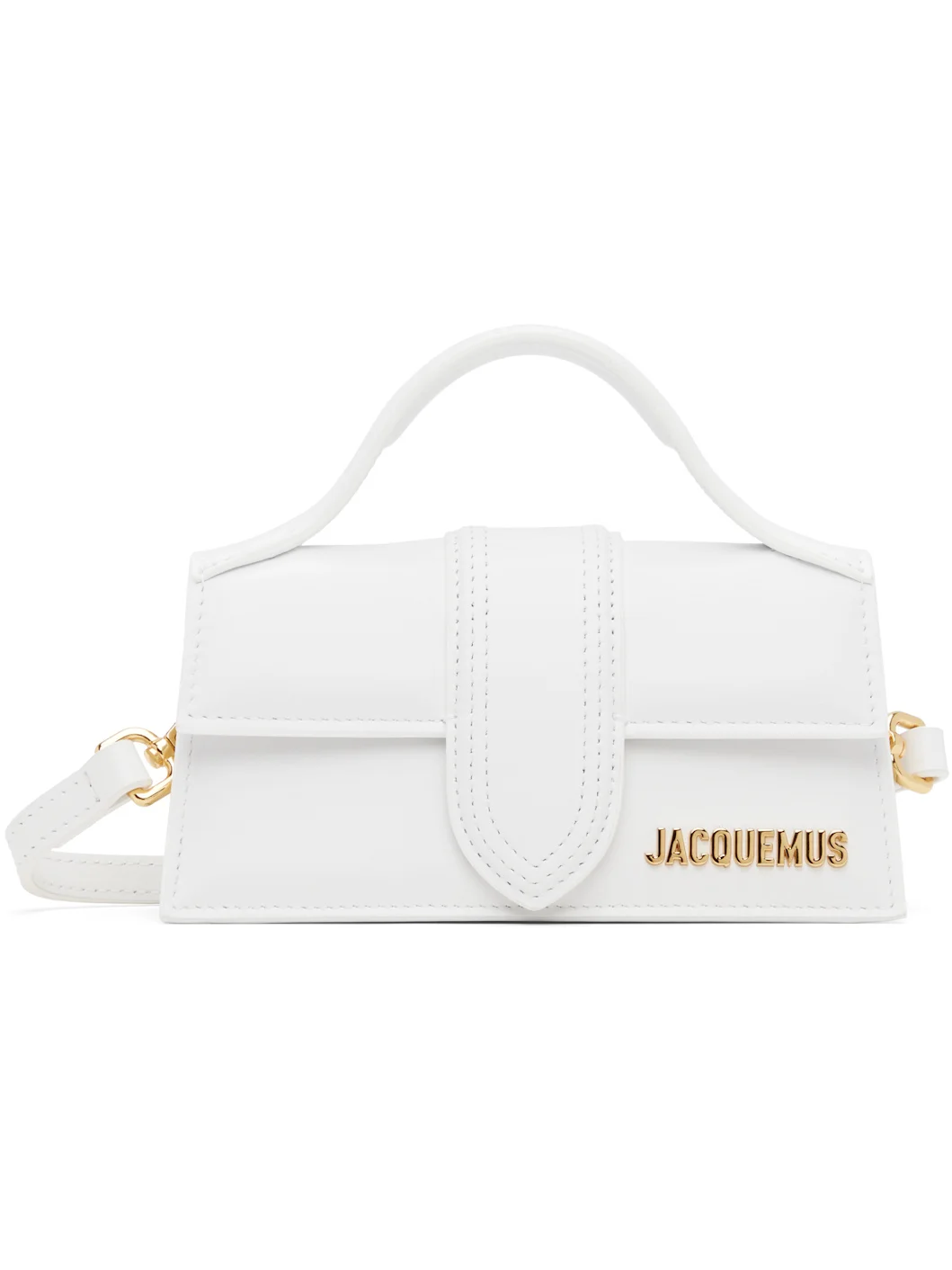 Buffed leather shoulder bag. · Fixed carry handle · Detachable and adjustable crossbody strap · Logo hardware at face · Card slot at back face · Magnetic flap · Cotton twill lining · H3.5" x W6.75" x D2.5" Part of the Les Classiques collection. Supplier color: White Leather. Made in Italy 252553F048041
