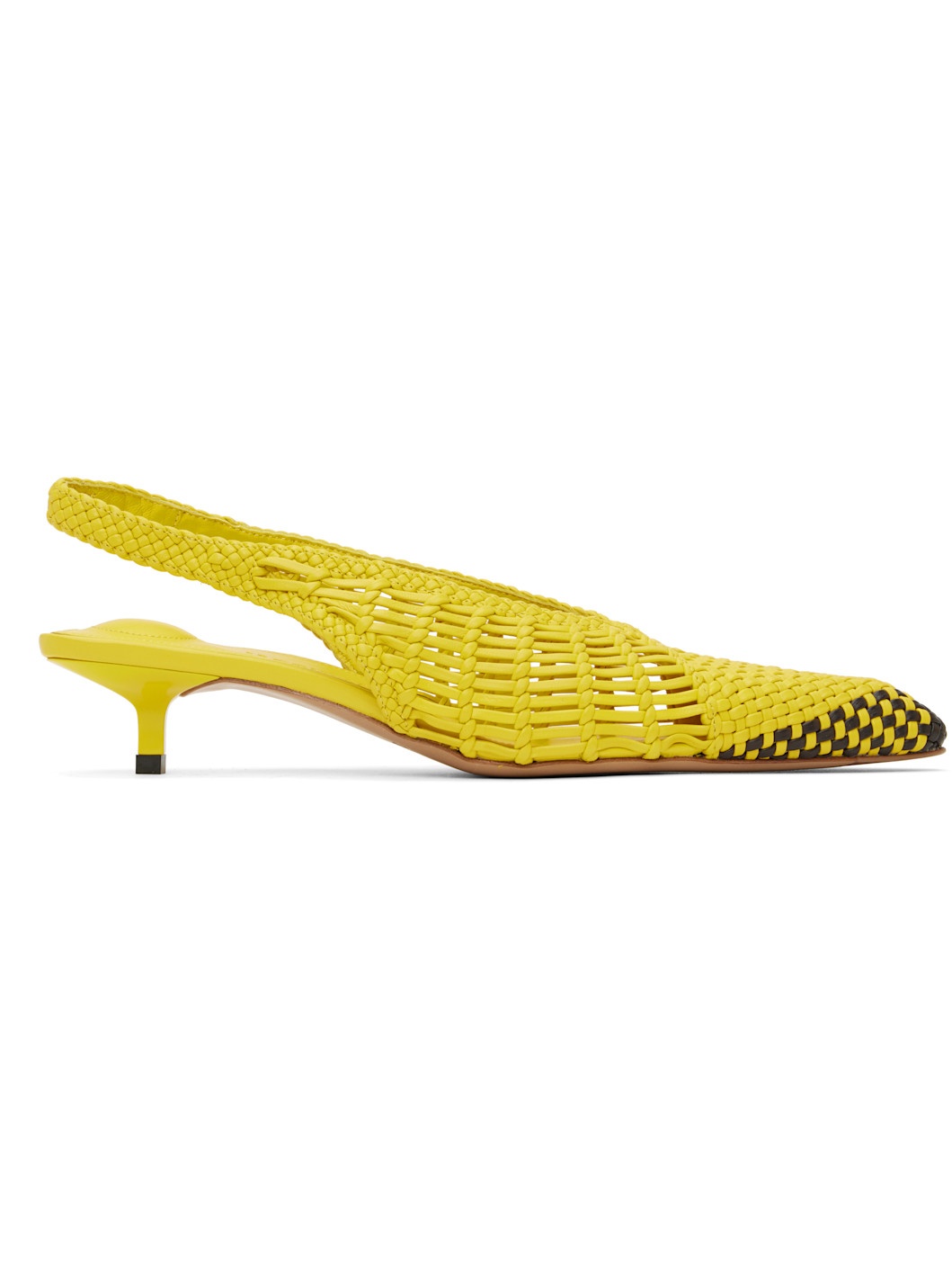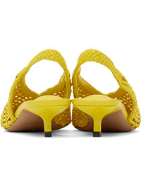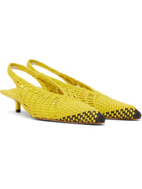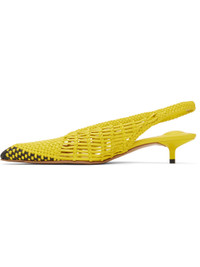 Hand-woven buffed lambskin heels in yellow. · Pointed toe · Partially elasticized slingback strap · Padded logo-embossed lambskin footbed · Buffed lambskin lining · Lacquered kitten heel · Leather sole with rubber injections · Heel: H1.75" Part of the La Croisiere collection. Supplier color: Yellow Upper: lambskin. Sole: leather, rubber. Made in Italy 251553F122011