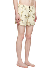 Polyester taffeta swim shorts. Graphic pattern printed throughout. · Concealed drawstring at elasticized waistband · Three-pocket styling · Exposed button fly · Logo patch at back pocket · Briefs-style mesh lining Part of the La Croisiere collection. Supplier color: Banana print yellow 100% polyester. Made in Portugal 251553M208003