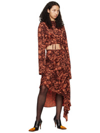 Viscose twill T-shirt. Floral pattern printed throughout. · Crewneck · Self-tie straps at cropped hem Supplier color: Brown/Orange 100% viscose. Made in Turkey 241772F110003