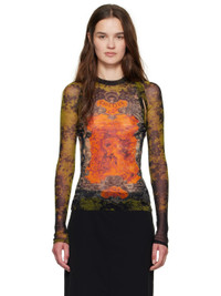Sheer nylon tulle bolero-style top. · Graphic pattern printed throughout · Locker loop at back collar · Logo printed at back Supplier color: Black/Khaki/Orange 100% polyamide. Made in Italy 252808F095001