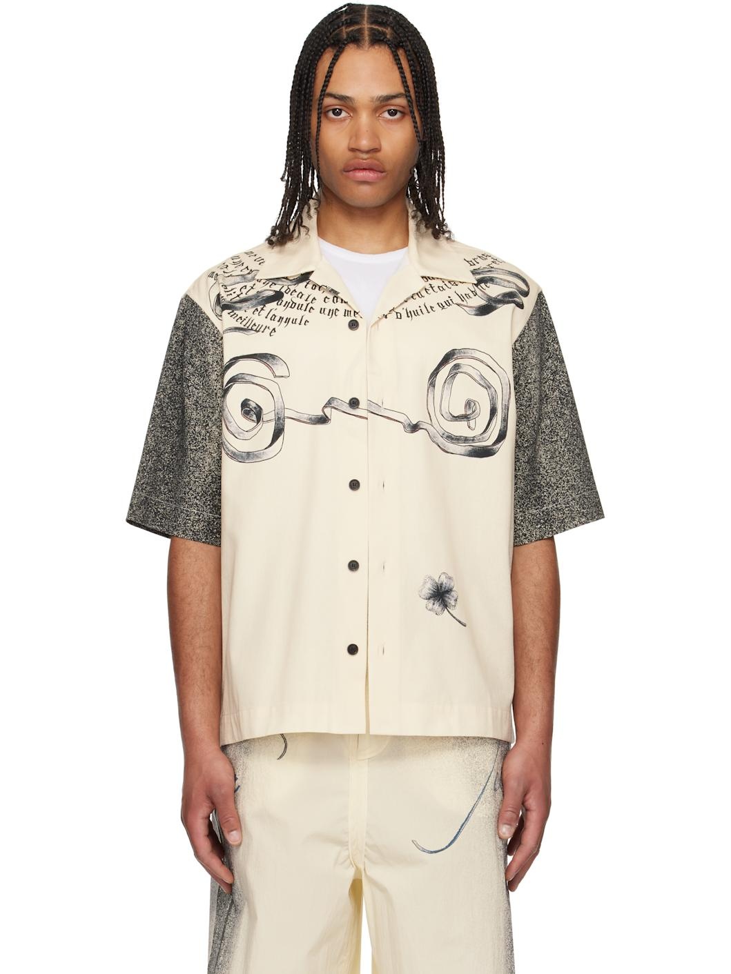 Cotton twill shirt. Speckled pattern printed throughout. · Open spread collar · Button closure · Graphics printed at front and back · Text printed at front · Printed logo and locker loop at back collar Supplier color: Ecru 100% cotton. Made in Portugal 251042M192002