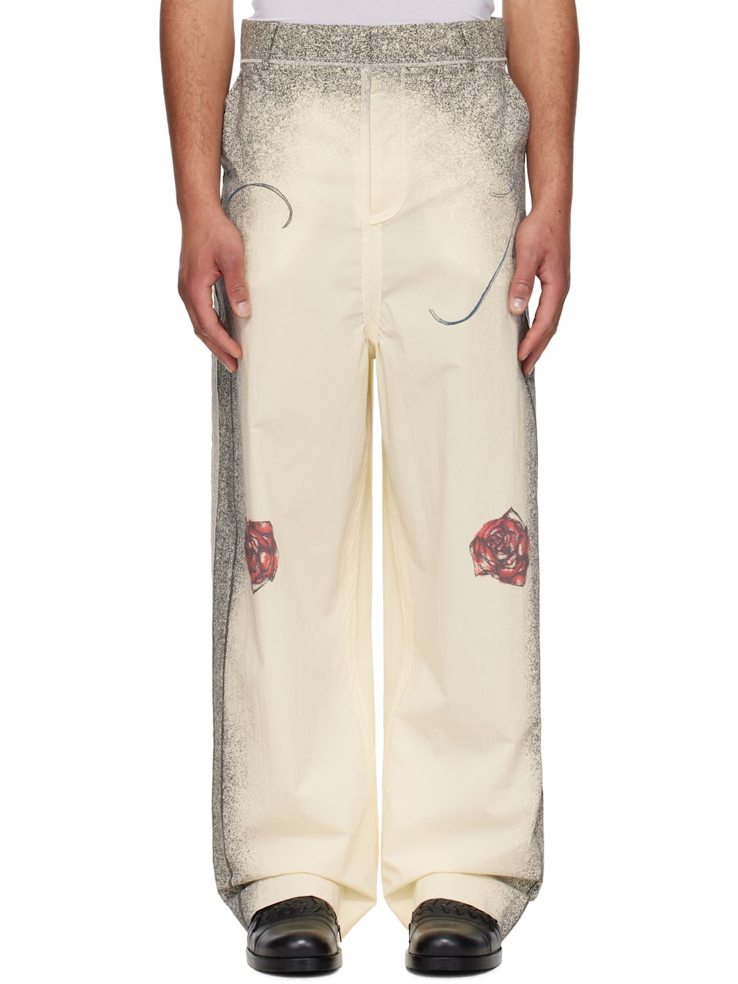 Stretch cotton- and nylon-blend taffeta trousers. Exposed seams and printed speckle pattern throughout. · Water-resistant · Belt loops · Four-pocket styling · Zip fly · Logo printed at outseams and back waistband · Locker loop at back Supplier color: Ecru Body: 54% cotton, 40% polyamide, 6% elastane. Lining: 100% cotton. Made in Italy 251042M191000