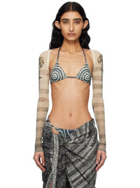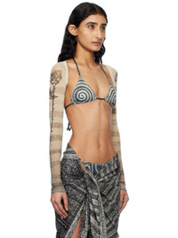 Sheer nylon tulle bolero-style cardigan. Logo graphic printed throughout. · Open front · Locker loop at back collar Supplier color: Ecru 100% polyamide. Made in Italy 251808F095000