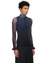 Stretch nylon tulle and jersey turtleneck. Striped pattern throughout. · Layered construction · Padded tubular cuffs · Central seam at front and back · Gusset at ragan sleeves · Locker loop at back Supplier color: Black/Navy/Light blue Body 1: 100% polyamide. Body 2: 80% polyamide, 20% elastane. Lining: 100% polyurethane. Made in Italy 251808M205000