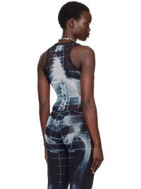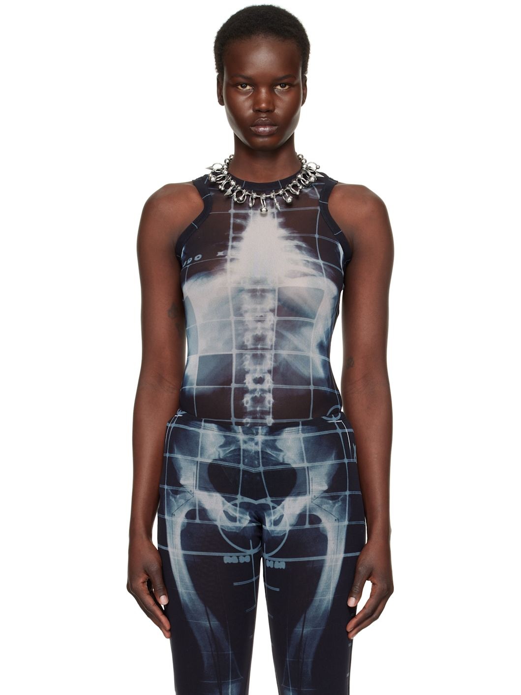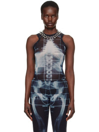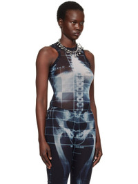 Semi-sheer nylon tulle bodysuit. Graphic and check pattern printed throughout. · Crewneck · Press-stud fastening at bottom · Locker loop at back collar Supplier color: Black/Navy/Light Blue 100% nylon. Made in Italy 251808F358005
