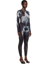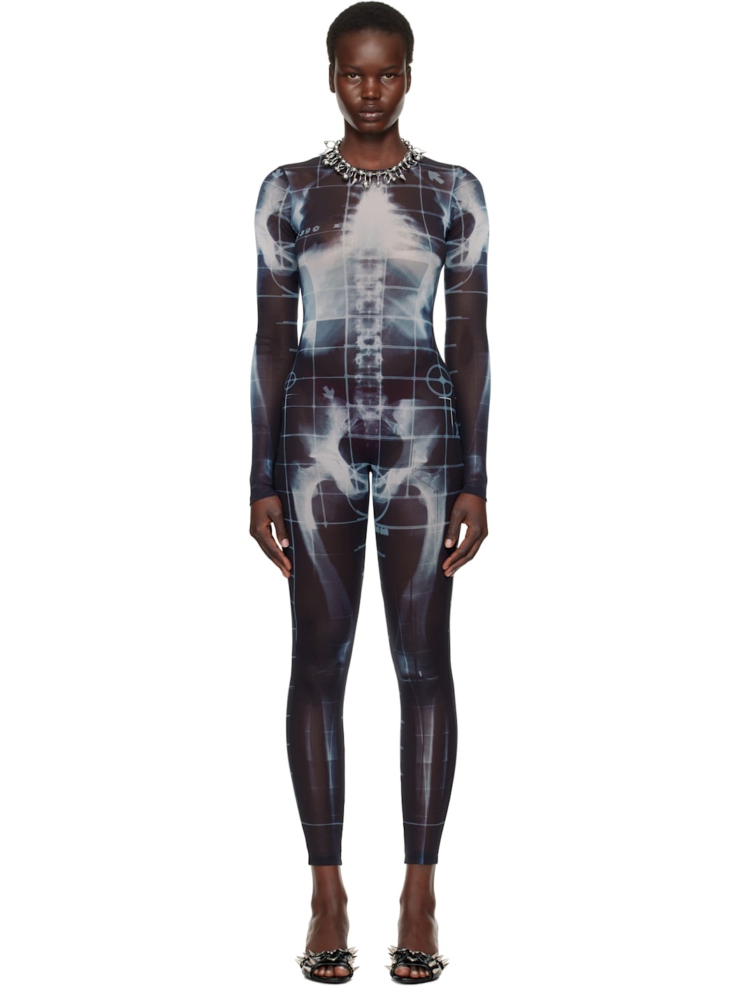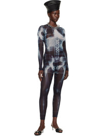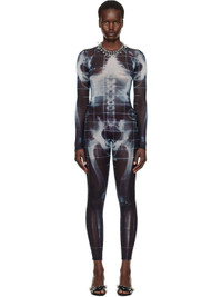 Semi-sheer nylon tulle jumpsuit. Graphic and check pattern printed throughout. · Crewneck · Zip closure and locker loop at back Supplier color: Black/Navy/Light Blue 100% nylon. Made in Italy 251808F070002