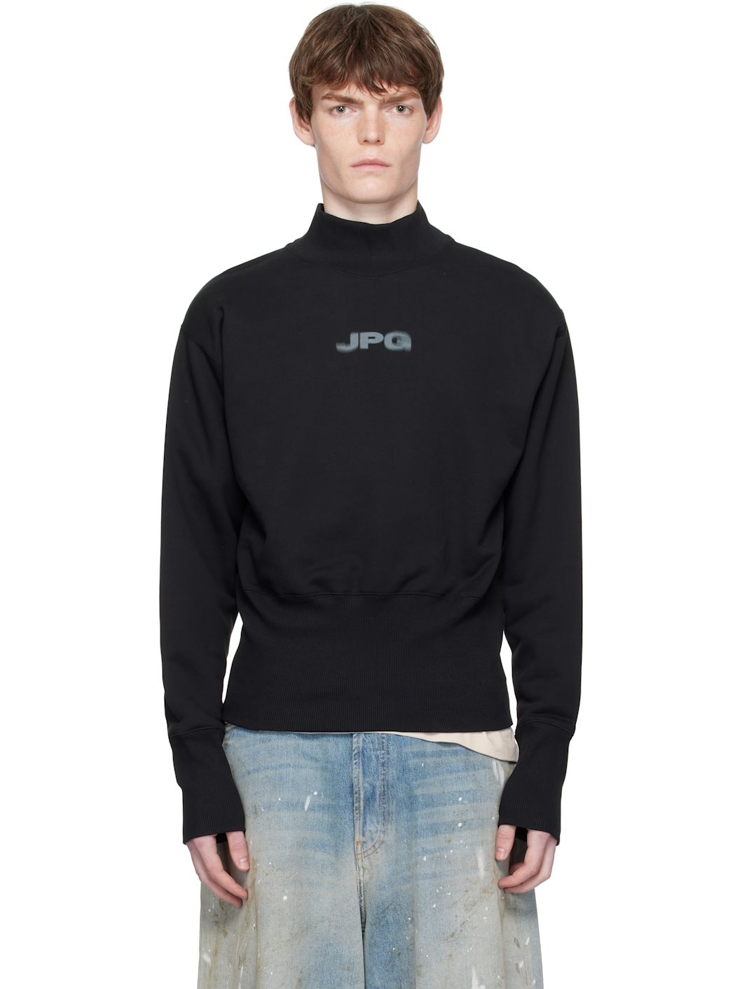 Cropped cotton jersey sweatshirt. · Rib-knit mock neck, hem, and cuffs · Logo printed at chest · Locker loop at back collar Supplier color: Black/Dark grey 100% cotton. Made in Portugal 252808M204001