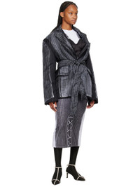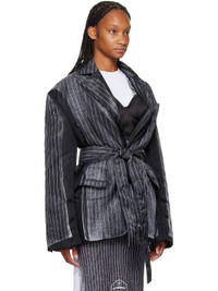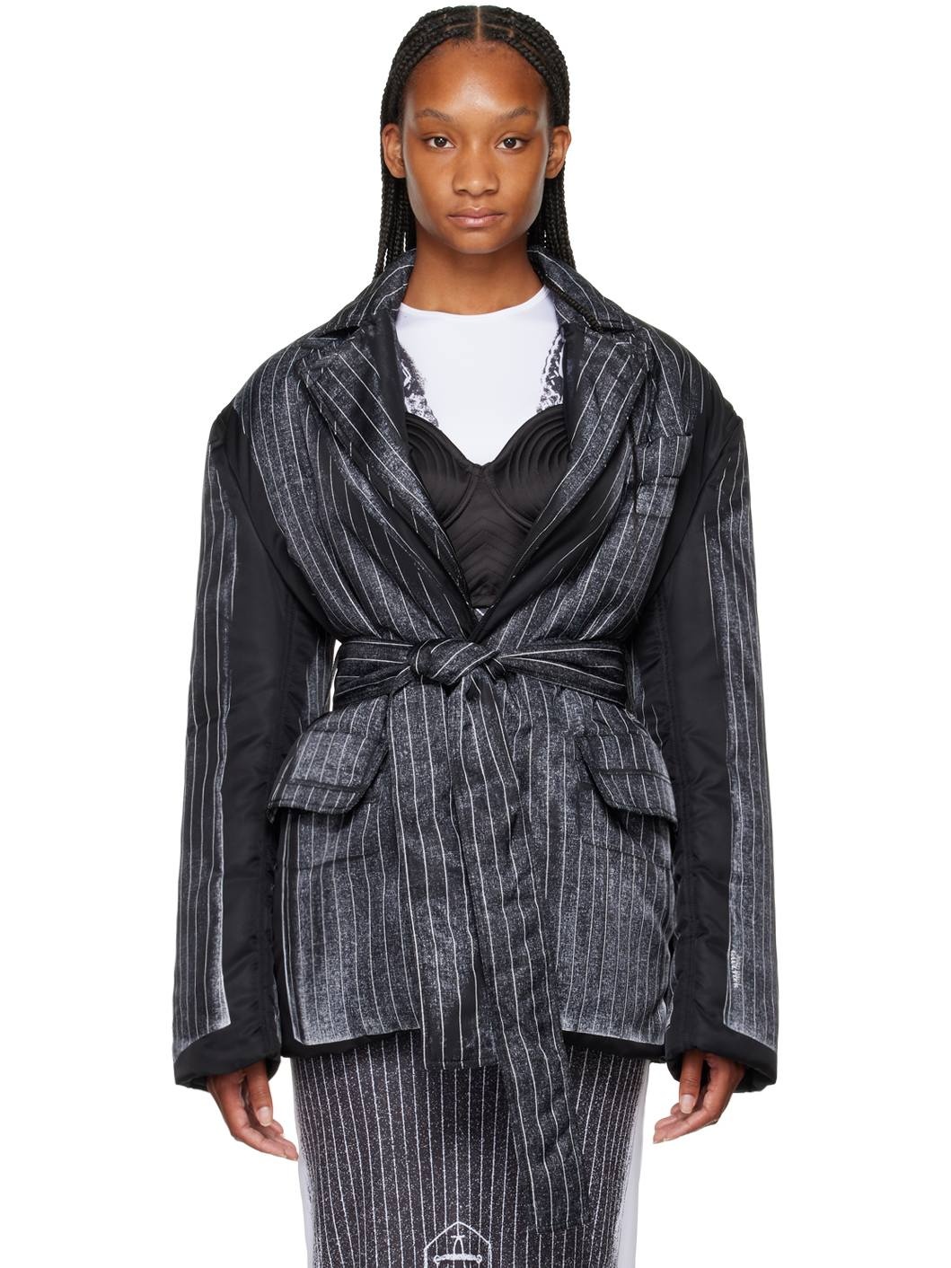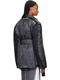 Insulated nylon taffeta blazer. Trompe L'Oeil graphic printed throughout. · Notched lapel · Button closure · Self-tie fastening at belt loops · Flap pockets · Four-button surgeon's cuffs · Central vent at back hem · Full nylon satin lining Supplier color: Black/White 100% nylon. Made in Italy 242808F063000