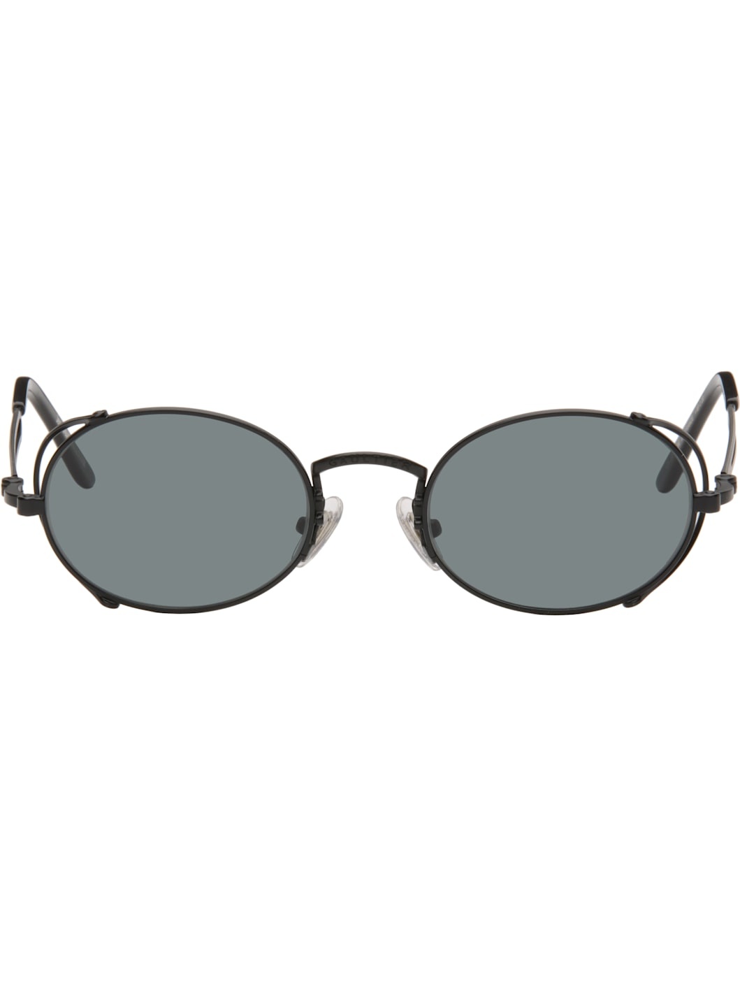Oval metal-frame sunglasses · Black lenses, category 3 · 100% UVA/UVB protection · Anti-glare coating · Logo engraved at bridge · Adjustable rubber nose pads · Cutout at arms · Mazzucchelli acetate temple tips · Includes case · Size: 49.20 145 Supplier color: Black Metal. Made in France 252808M134004