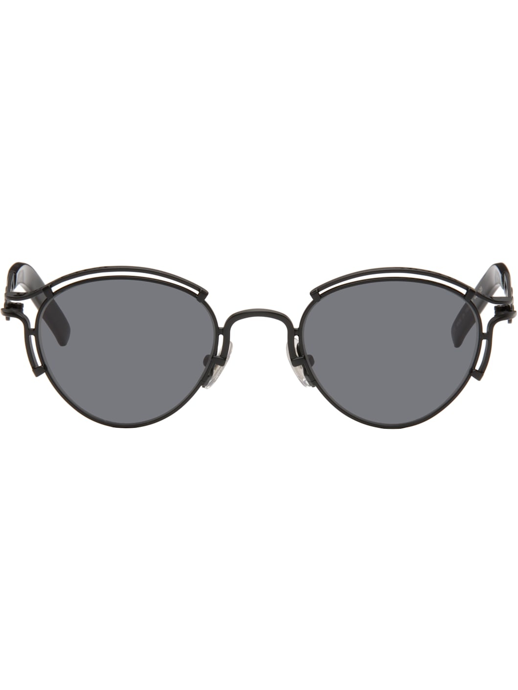 Round metal-frame sunglasses. · Black lenses, category 3 · 100% UVA/UVB protection · Anti-glare coating · Logo cutouts at top rims · Adjustable rubber nose pads · Cutouts at arms · Mazzucchelli acetate temple tips · Includes case · Size: 49.23 145 Supplier color: Black Metal. Made in France 252808M134008