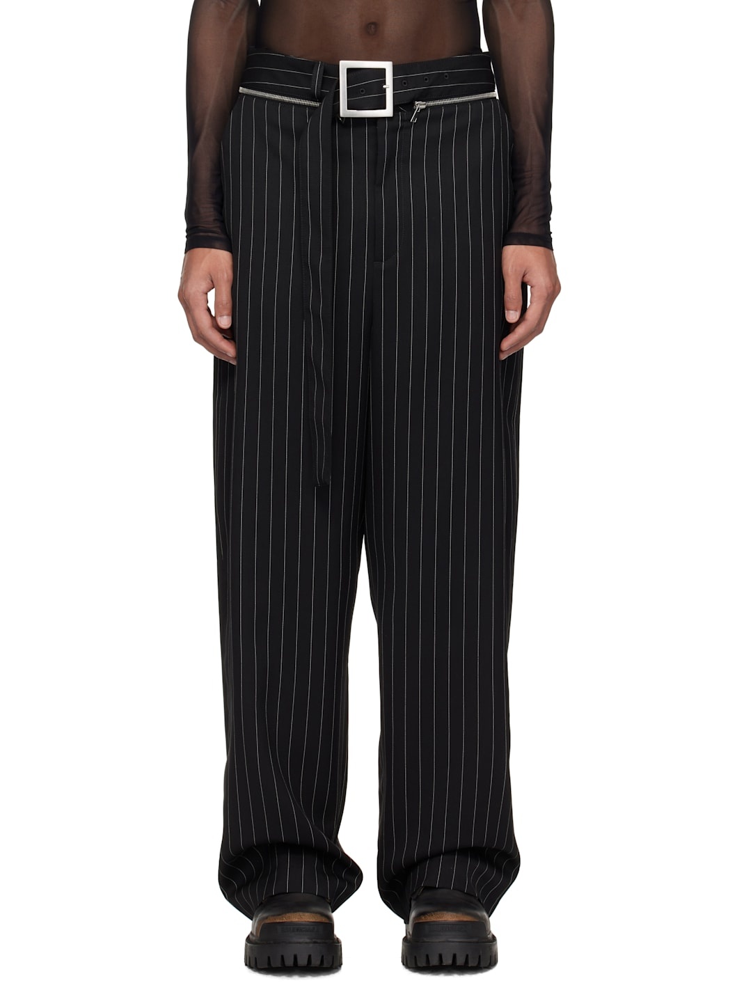Loose-fit virgin wool twill trousers. Pinstripes throughout. · High-rise · Detachable pin-buckle belt · Four-pocket styling · Zip fly · Locker loop at back Supplier color: Black/White 100% virgin wool. Made in Italy 251808M191002