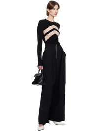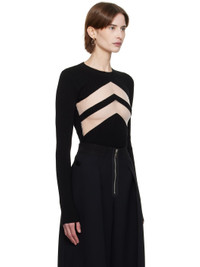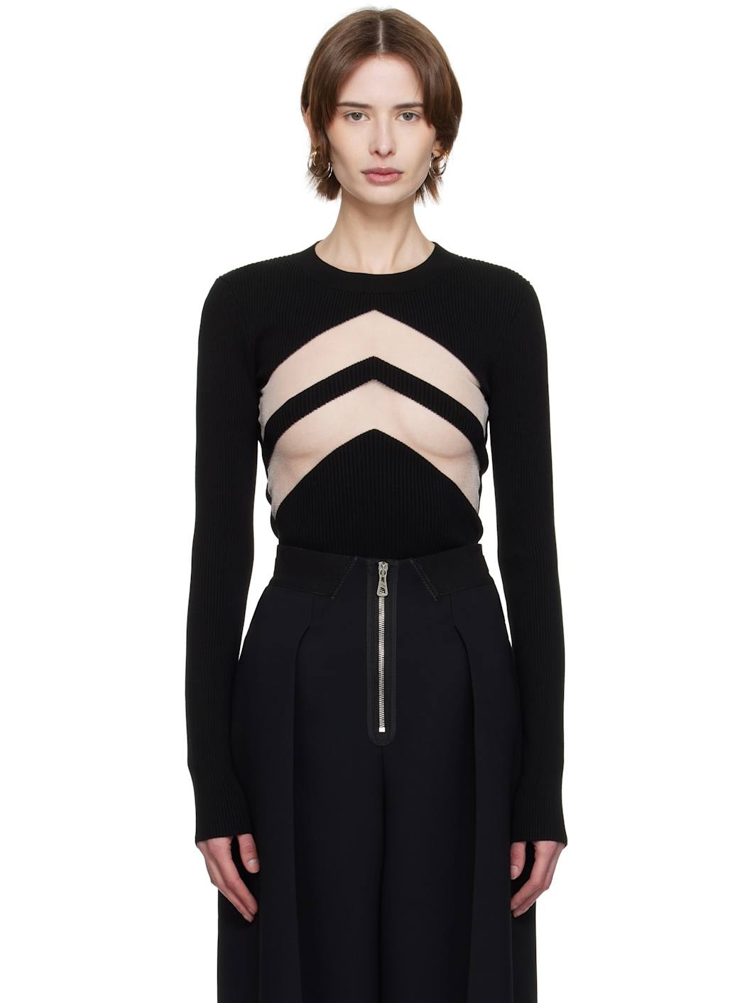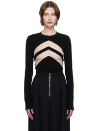 Rib-knit viscose-blend sweater. · Crewneck · Sheer mesh chevron panels at front · Locker loop at back Supplier color: Black 67% viscose, 28% polyester, 5% polyamide. Made in Italy 251808F110011