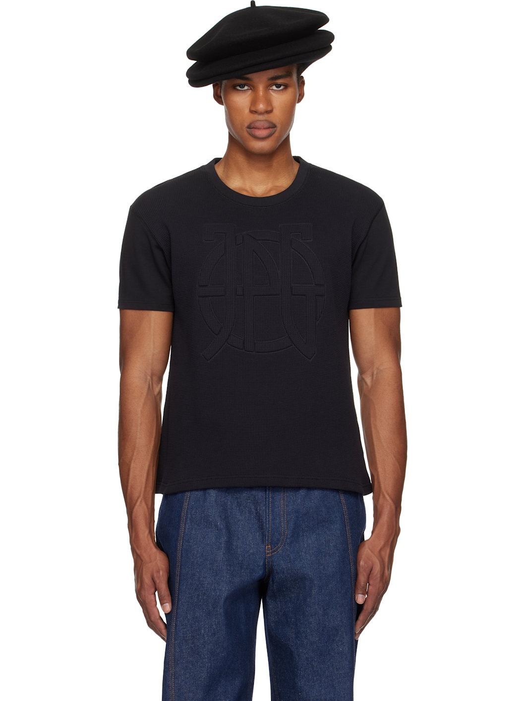 Oversized waffle-knit cotton and cotton jersey T-shirt. · Paneled construction · Rib-knit crewneck · Logo embossed at front · Locker loop at back collar Supplier color: Black 100% cotton. Made in Portugal 251808M213001