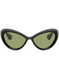 Cat-eye acetate-frame sunglasses. · Handcrafted · Green lenses, category 2 · Integrated nose pads · Logo plaque at temples · Eyewear chain-compatible · Includes pouch Supplier color: Black Acetate. Made in Italy 252808F005001