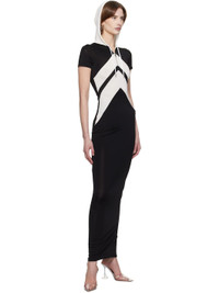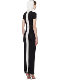 Stretch viscose interlock jersey maxi dress. · Paneled construction · Drawstring at hood · Half-zip closure · Chevron pattern at front · Logo patch at cuff · Stripe at back Supplier color: Black/White 95% viscose, 5% elastane. Made in Portugal 251808F055014