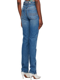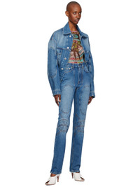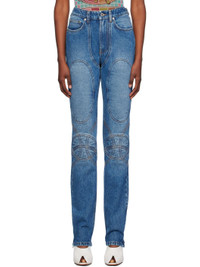 Non-stretch denim jeans. Fading and subtle distressing throughout. · Belt loops · Five-pocket styling · Zip-fly · Padded panels at front · Zip vent at cuffs · Adjustable button-tab at back waistband · Lace-up detailing at back · Logo-engraved silver-tone hardware · Contrast stitching in tan Supplier color: Vintage blue 100% cotton. Made in Italy 242808F069015