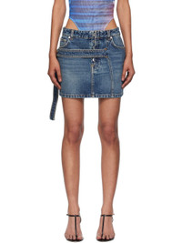 Non-stretch denim miniskirt. · Fading and whiskering throughout · Belt loops · Five-pocket styling · Exposed button fly · Button strap at front · Logo patch at back waistband · Contrast stitching in tan Supplier color: Vintage blue Body: 100% cotton. Trim: 65% polyester, 35% cotton. Made in Italy 252808F090001