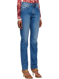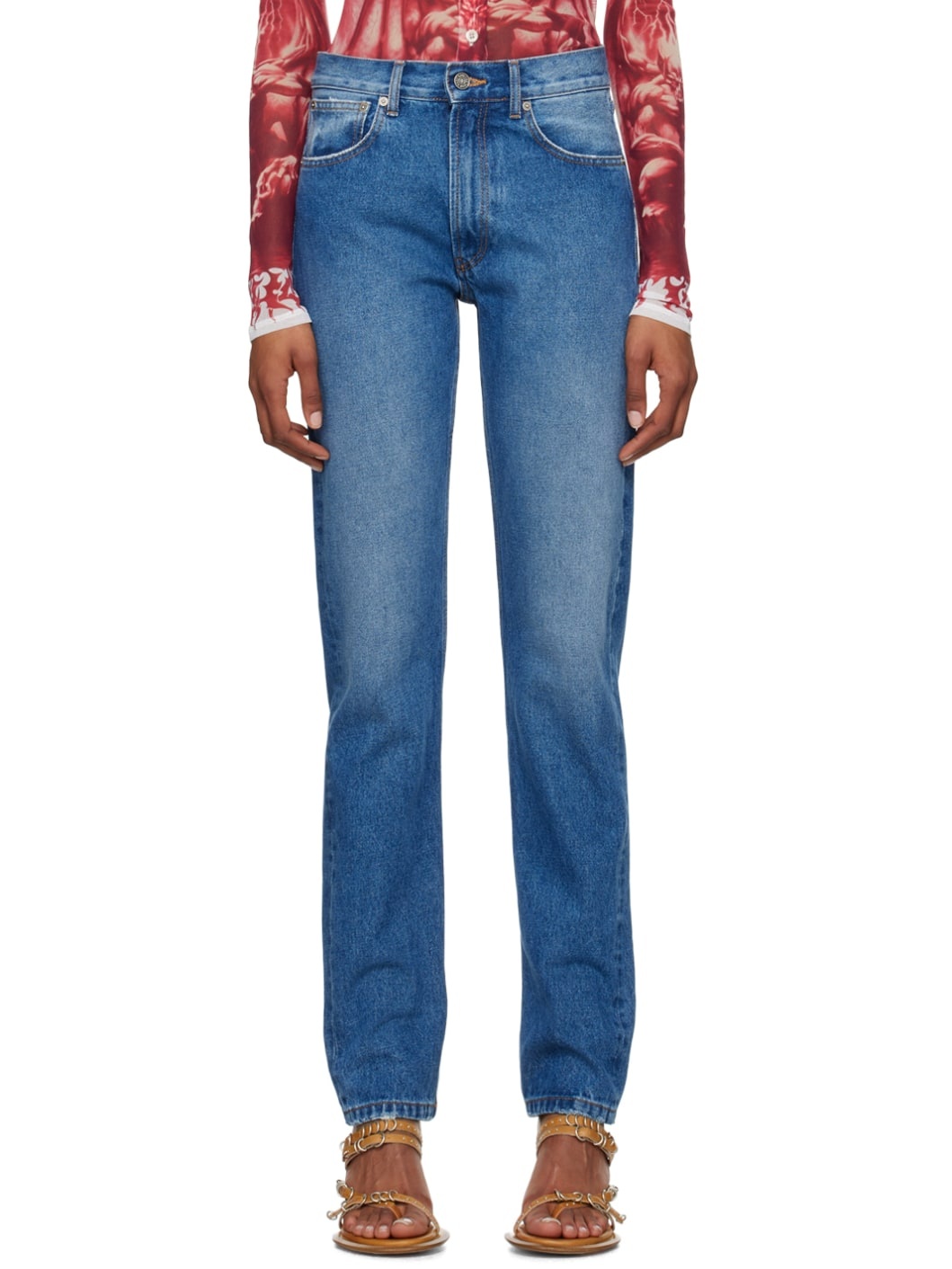 Non-stretch denim jeans. Fading and subtle distressing throughout. · Belt loops · Five-pocket styling · Zip-fly · Locker loop at back yoke · Logo printed at back pocket · Logo-engraved silver-tone hardware · Contrast stitching in tan Part of the Tres Gaultier collection. Supplier color: Vintage blue/White 100% cotton. Made in Portugal 242808F069006