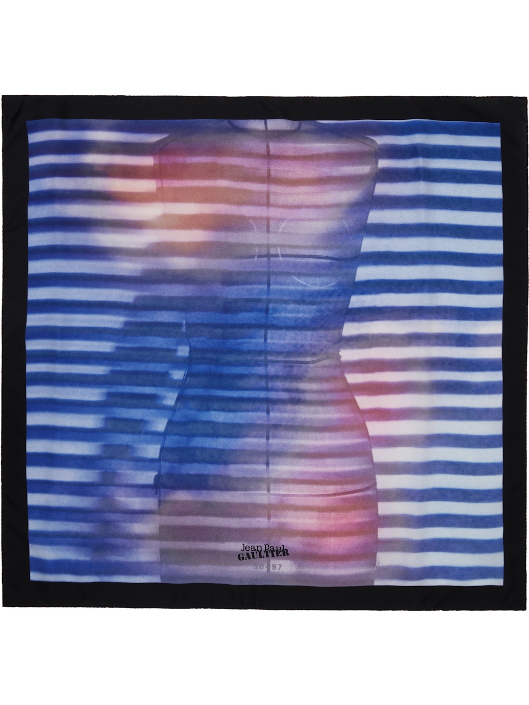 Square silk twill scarf. · Graphic and stripes printed throughout · Logo printed at face · H25" x W25" Supplier color: Blue 100% silk. Made in Italy 252808M150001