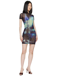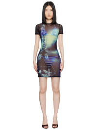 Semi-sheer nylon tulle dress. Graphic printed throughout. · Crewneck · Locker loop at back collar Part of the Fashion Fiction collection. Supplier color: Navy/Light blue/Black 100% polyamide. Made in Italy 242808F052017